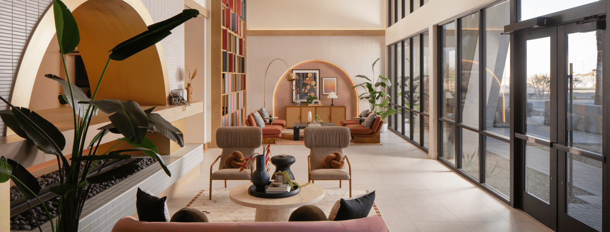 Modera Rio Salado offers one-, two- and three-bedroom homes with select den and townhome layouts. Community amenities include an outdoor swimming pool, outdoor kitchen/bar and grill areas, landscaped courtyards, coworking spaces with private workstations, clubroom with gaming tables, media and lounge room, state-of-the-art fitness center, yoga/Pilates studio and a hotel-inspired lobby with double-height ceilings, seating areas and fireplace lounge. The community also features an outdoor pet park, complimentary high-speed WiFi in common areas, bike repair station, dedicated bike storage area, additional storage, digital package lockers and controlled-access parking garage with EV-charging stations.